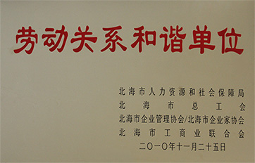 2010年以來,中電北海產業(yè)園深入開展“勞動關系和諧單位”活動,取得了良好收效,近日,中國電子北海產業(yè)園發(fā)展有限公司獲得北海市人力資源和社會保障局、北海市總工會、北海市企業(yè)管理協(xié)會/北海市企業(yè)家協(xié)會、北海市工商業(yè)聯(lián)合會四家單位聯(lián)合授予的“勞動關系和諧單位”稱號。