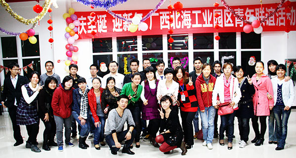 2010年12月23日晚,由產(chǎn)業(yè)園公司團(tuán)支部與工業(yè)園工會(huì)、工業(yè)園團(tuán)工會(huì)聯(lián)合舉辦的“慶圣誕,迎新年,廣西北海工業(yè)園區(qū)青年聯(lián)誼活動(dòng)”在產(chǎn)業(yè)園員工活動(dòng)室舉行。