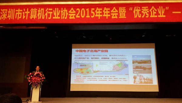 2016年1月7日,深圳市計(jì)算機(jī)行業(yè)協(xié)會2015年年會隆重舉行,受協(xié)會之邀,中國電子科技開發(fā)有限公司總經(jīng)理、北海市電子信息行業(yè)協(xié)會會長賀海華率中電科技旗下北海、西安、溫州園區(qū)參加盛會,賀海華與會員單位分享交流了中電科技建設(shè)產(chǎn)業(yè)園區(qū)板塊經(jīng)驗(yàn),介紹推介了各地方園區(qū)產(chǎn)業(yè)特點(diǎn),衷心希望與各會員企業(yè)開展產(chǎn)業(yè)合作,歡迎來園區(qū)調(diào)研、拓展業(yè)務(wù),賀海華的精彩講解得到了參會嘉賓們的高度認(rèn)同與熱烈回應(yīng)。盛會間隙,北海、溫州、西安園區(qū)相關(guān)負(fù)責(zé)人和意向投資企業(yè)進(jìn)行了暢談,現(xiàn)場氣氛活躍,很多企業(yè)對中國電子投資建園的地區(qū)表達(dá)了合作意向,愿意進(jìn)一步加強(qiáng)了解與合作,其中,北海以獨(dú)特的區(qū)位優(yōu)勢、產(chǎn)業(yè)政策、生態(tài)優(yōu)勢,備受多家深圳企業(yè)重點(diǎn)關(guān)注。